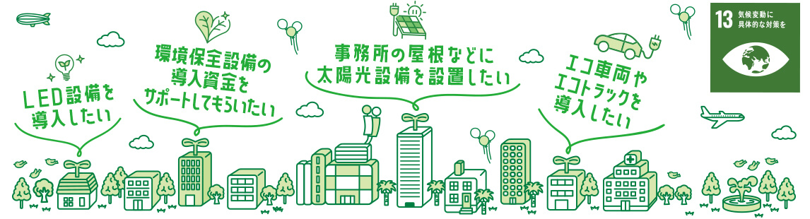 SDGs気候変動対策に資する設備資金(事業資金) ※旧債償還・アパート建築資金は不可 |