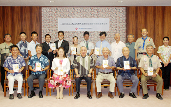 助成金授与式には、助成が決定した10団体の各代表者の方々が参加し、当財団からは大城勇夫理事長、宮城常務理事が参加いたしました。