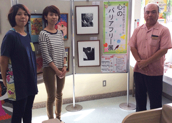 琉球銀行泡瀬支店では、「相談支援事業所地域活動支援センターおきなわ」様のご協力をいただき『心のバリアフリー展』を行っています。毎年行われている沖縄市平和月間事業への賛同企画です。