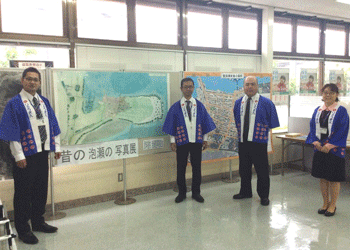 琉球銀行泡瀬支店では、泡瀬復興期成会のご協力を得て当店開店30周年記念として「昔の泡瀬の写真展」を行っています。