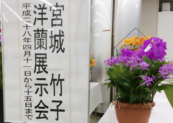 城間支店では、宮城竹子様が栽培された洋蘭作品を、提供いただきロビー展を開催しました。