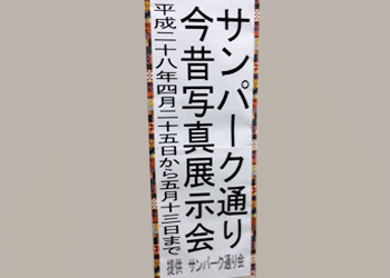 城間支店に面しているサンパーク通りは、浦添市城間の発展と共に町並みが様変わりしました。その歴史を多くの人に知ってほしいと城間支店が参加している「サンパーク通り会」からの依頼で、『サンパーク通り今昔写真展』を行いました。