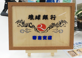 寄宮支店では、和宇慶勉さまから作品を提供いただき、木の温もり溢れる糸のこ工芸作品展を開催しました。