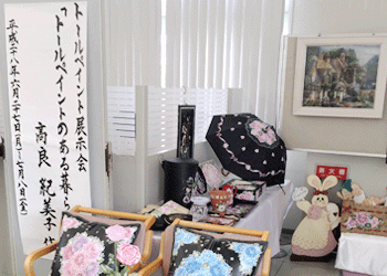 金城支店では、高良紀美子様作のトールペイントの展示会を開催しています。