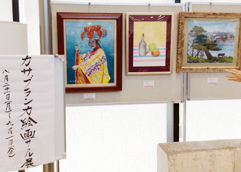 うるま市で活動している「カサブランカ絵画サークル」の絵画展を具志川支店ロビーにて2週間の予定で開催しています。