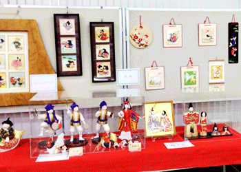 ロビーに展示された作品は、干支にちなんだもの、押絵、三線、エイサー琉球人形、ふくろうの置物等、どの作品も心のこもった素敵な作品でした。