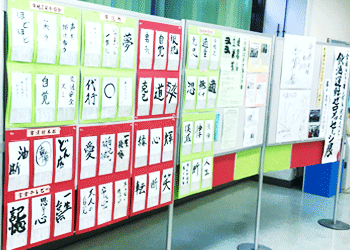 池田様の書道教室に通う生徒さんの作品だけではなく、市役所や警察の職員の方々の筆文字による、飲酒運転撲滅に向けた様々な思いを掲示させてもらいました。