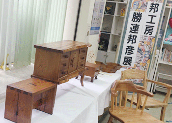 若い頃から趣味で行っていた木工芸を、公務員退職を機に本格的に始められた勝連邦彦氏の作品展を開催しました。