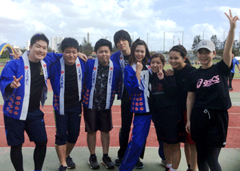 当日は晴れわたった空のもと、北谷町内の各字(あざ)対抗種目や企業対抗リレーなど多数の種目があり、北谷支店のメンバーは、職域対抗リレーに男性チーム、女性チームとして参戦しました。