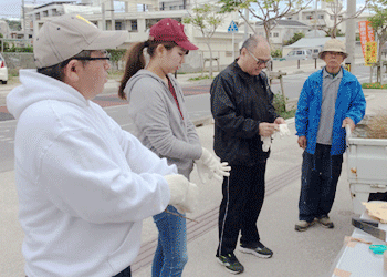 古波蔵支店のメンバーも早朝から参加し、準備から片づけまで大活躍で、ご褒美に美味しいつきたてのお餅と豚汁をご馳走になりました。