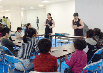 「子供たちが夢と希望をもち、チャレンジ精神をはぐくむ」をテーマに、沖縄県商工労働部雇用政策課主催の「グッジョブ☆おきなわ わくわくワーク」が開催され、コザ支店から女性行員2名が講師となり、紙幣の数え方や銀行の仕事について説明を行いました。