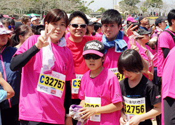 東洋一の長さを誇る「海中道路」を駆け抜ける「あやはし海中ロードレース」に屋慶名支店から3名のジョガーと、4名の応援団が参加しました。