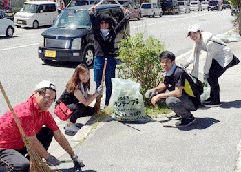 毎年2回行われる清掃活動で、今回は来たる9月15日(土)に県立中部病院の駐車場にて開催されるお祭り『観月の夕べ』に備えて実施されました。