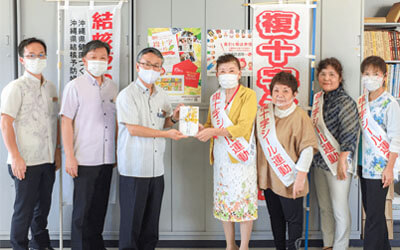 沖縄県結核予防婦人連絡協議会 会長 與那覇 信子様より、「コロナウイルス感染症の影響で思うように広報活動ができない状況ですが、これを機に募金活動を再開していきたい」とのお言葉をいただきました。