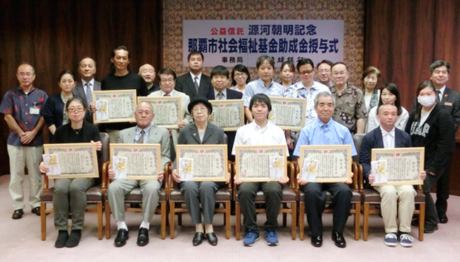 琉球銀行(頭取 川上 康)では、県内での福祉活動を支援する目的で設立された公益信託「源河朝明記念那覇市社会福祉基金」の助成金授与式を開催いたしました。