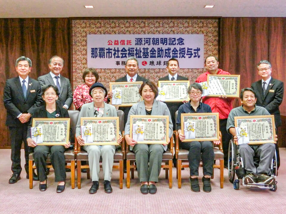 琉球銀行(頭取 川上 康)は、県内での福祉活動を支援する目的で設立された公益信託「源河朝明記念那覇市社会福祉基金」の助成金授与式を開催いたしました。