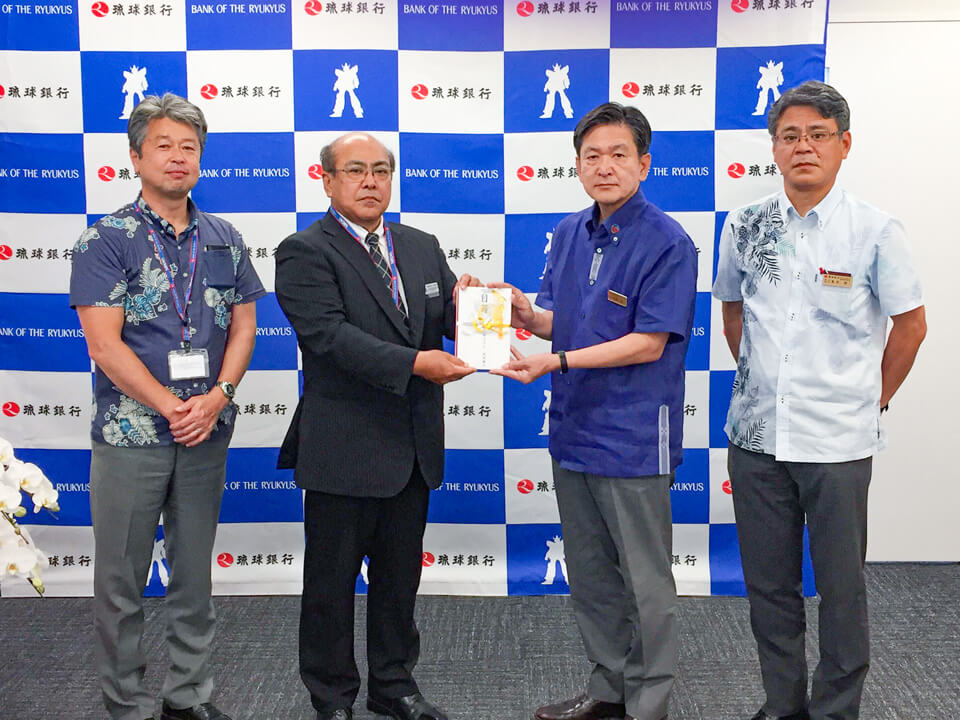 琉球銀行(頭取 川上 康)は、国際交流推進事業を実施している「公益財団法人沖縄県国際交流・人材育成財団」へ寄付金を贈呈いたしました。