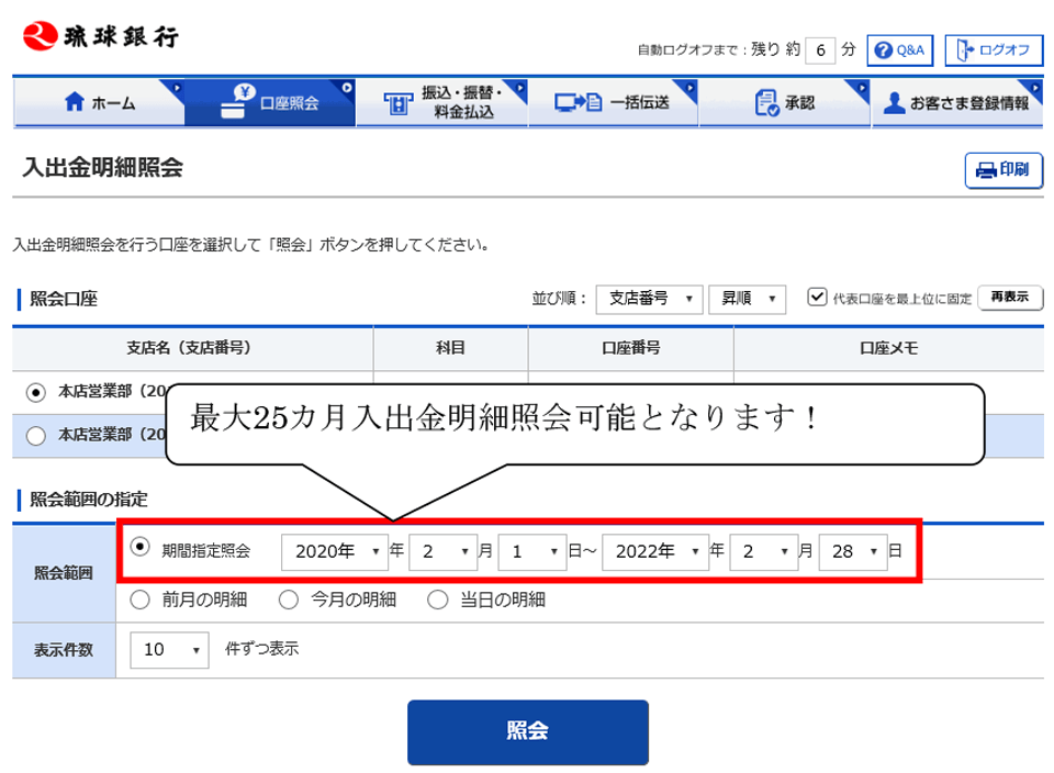 入出金明細照会可能期間が、100日間から最大25カ月※に拡大します。