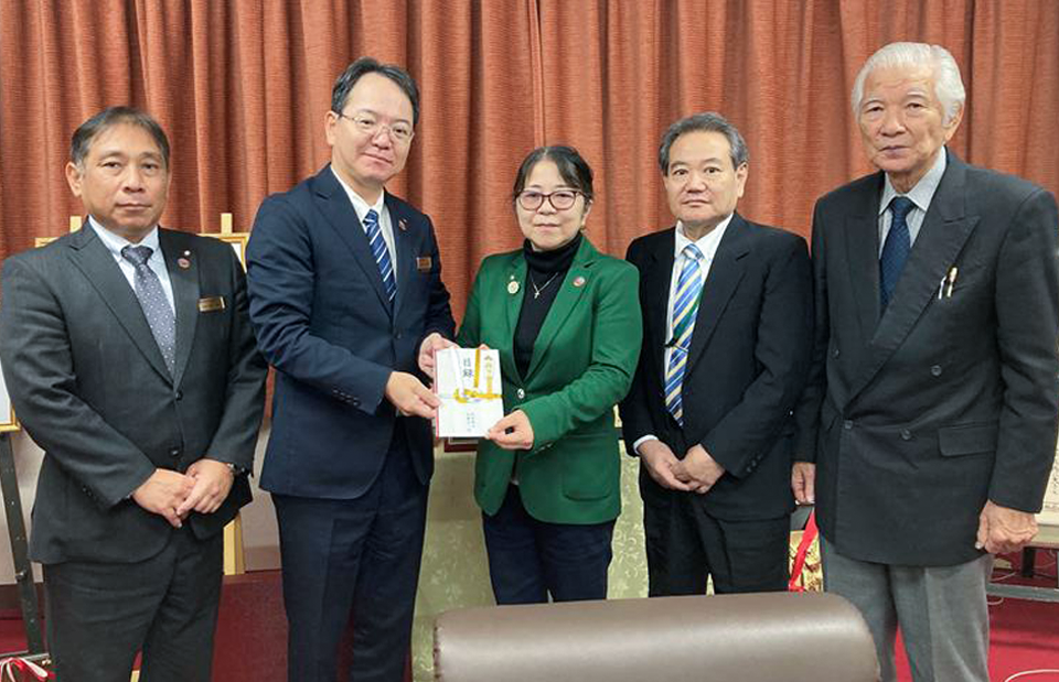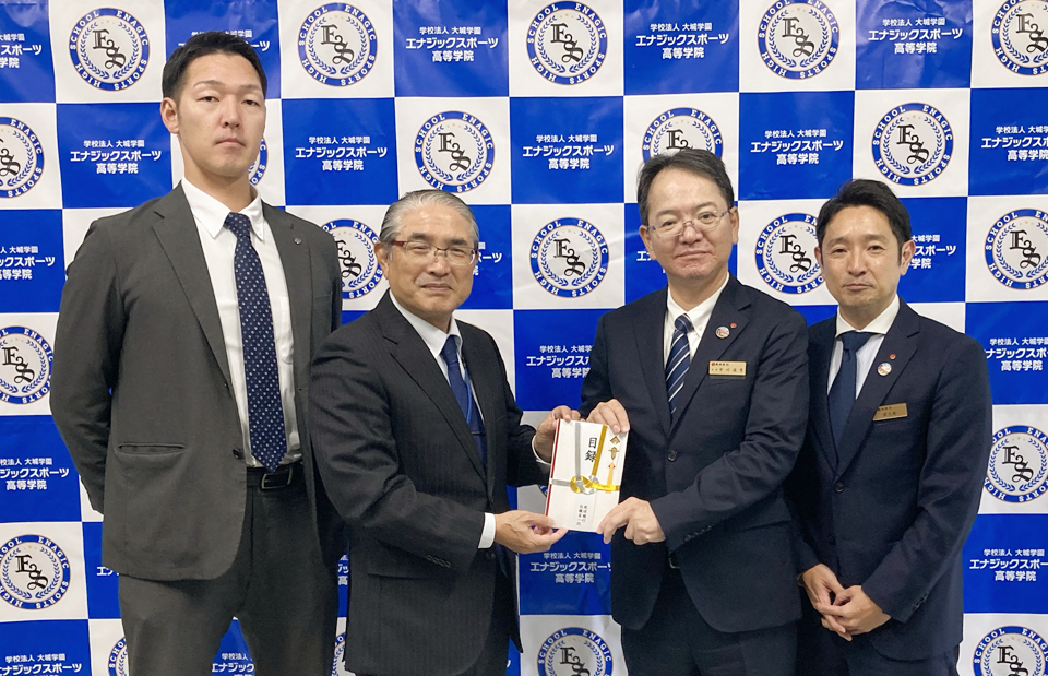 琉球銀行(頭取 島袋 健)役職員一同は、第97回選抜高等学校野球大会(3月18日開幕)への出場が決定した沖縄尚学高等学校およびエナジックスポーツ高等学院を訪問し、寄付金を贈呈いたしました。