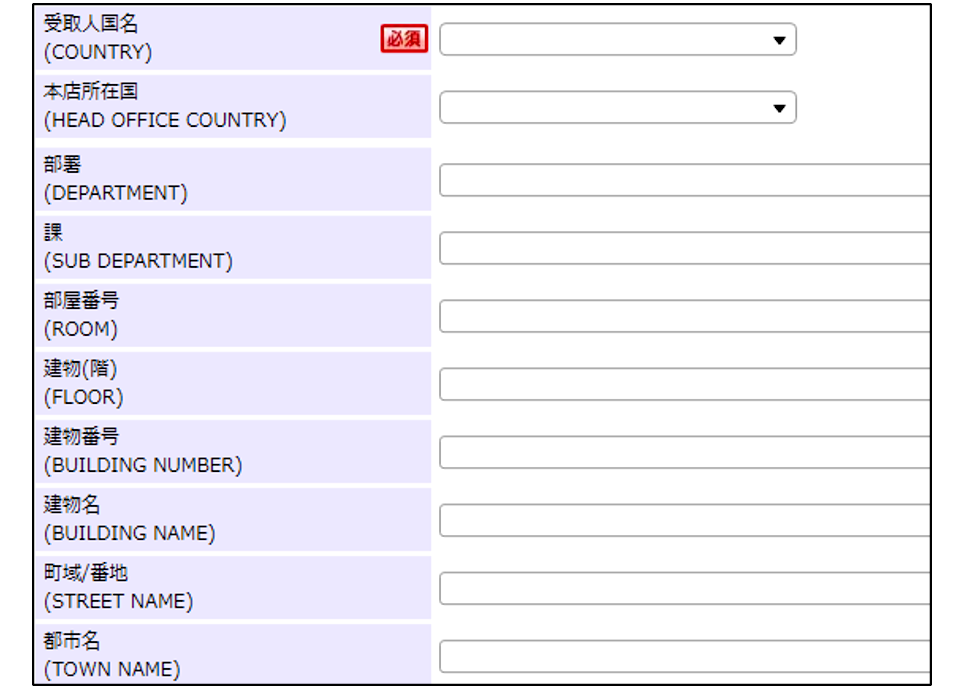 これまで1行に入力していた送金依頼人さま・受取人さまの住所が、下記のような細分化した形式での入力となります。