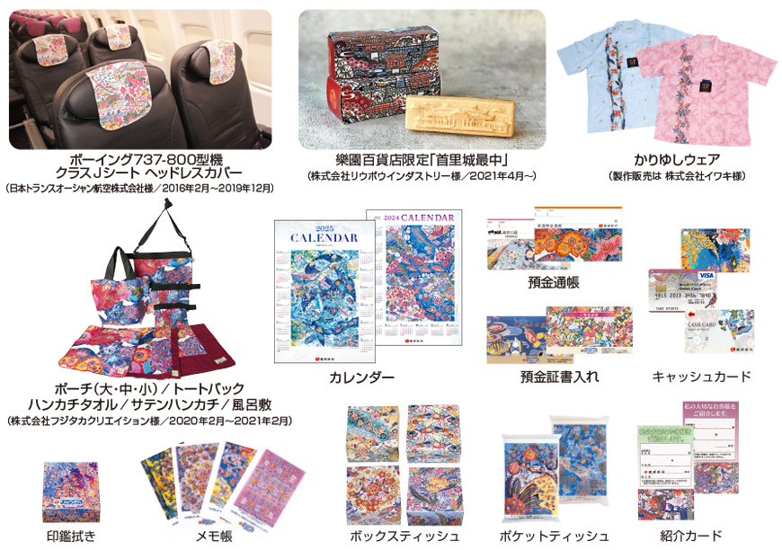 平成4年より琉球銀行では沖縄県の伝統工芸の一つである紅型の振興と若手工芸家の育成ならびに紅型デザインの新しい領域を追求していくことを目的に、「りゅうぎん紅型デザインコンテスト」を毎年開催しております。応募作品は展示会で発表するとともに、受賞作品については当行のカレンダーや通帳、広報物などに広く活用しております。また、平成21年よりこれまでの受賞作品215点のデザインを県内企業に幅広くご活用いただけるようにしました。