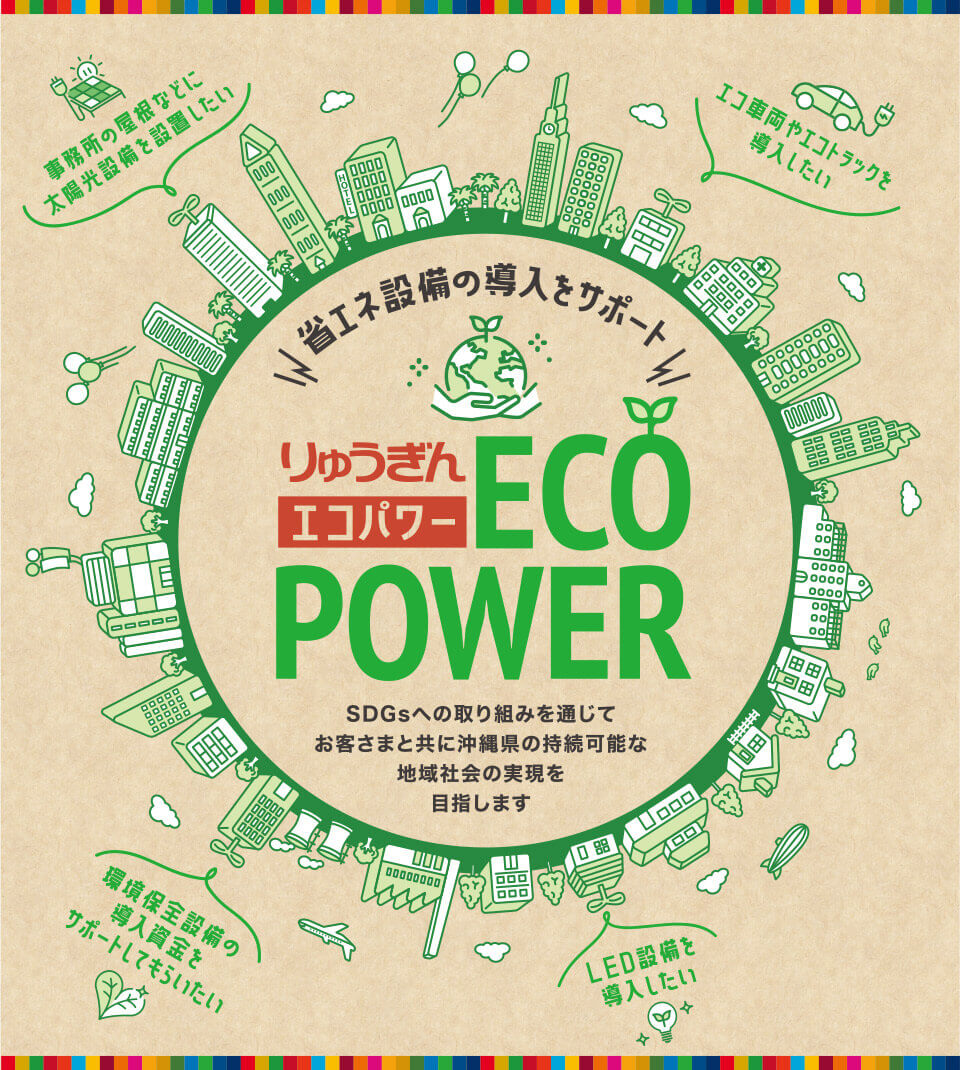琉球銀行は地域金融機関として、持続可能な地域経済構築のため、CO2/GHG(温室効果ガス)の削減に、主体的、積極的に取り組んでいきます。