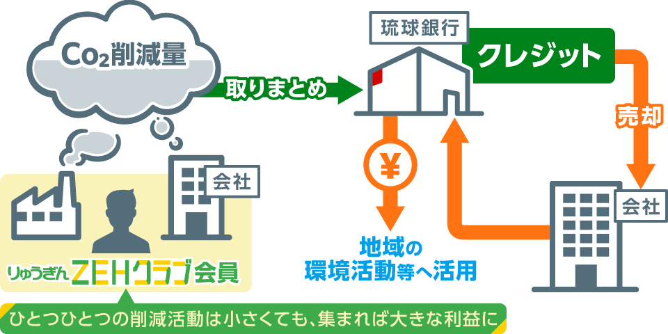 当行はプログラム型J-クレジット制度を活用し、創出した資金を元にCO2排出量の削減に取り組んでいます。
