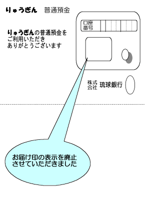 なお、窓口にご来店いただけないお客様は、ご自身でお通帳(使用済通帳含む)からお届け印の表示を取り除くようお願い申し上げます。 - お客様のお届け印をコンピューターに登録するシステムを導入しましたので、普通預金・貯蓄預金のお引き出しは、従来どおり当行すべての本支店でお取り扱いできます。