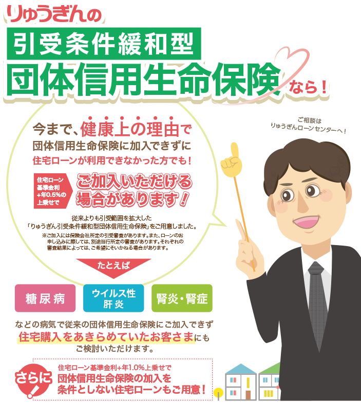 ※ここでの保険に関する説明は、琉球銀行が保険契約者としての立場から、ローン契約者の皆さまの便宜のため、自発的に行っております。いわゆる保険募集のための説明ではありません。