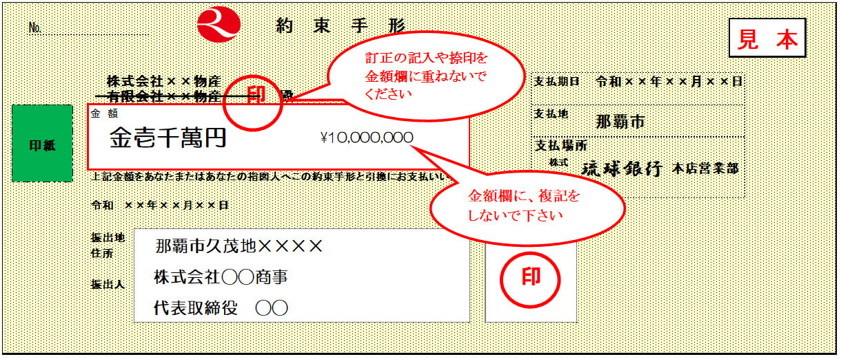 手形・小切手用紙への記入方法に関するご留意事項