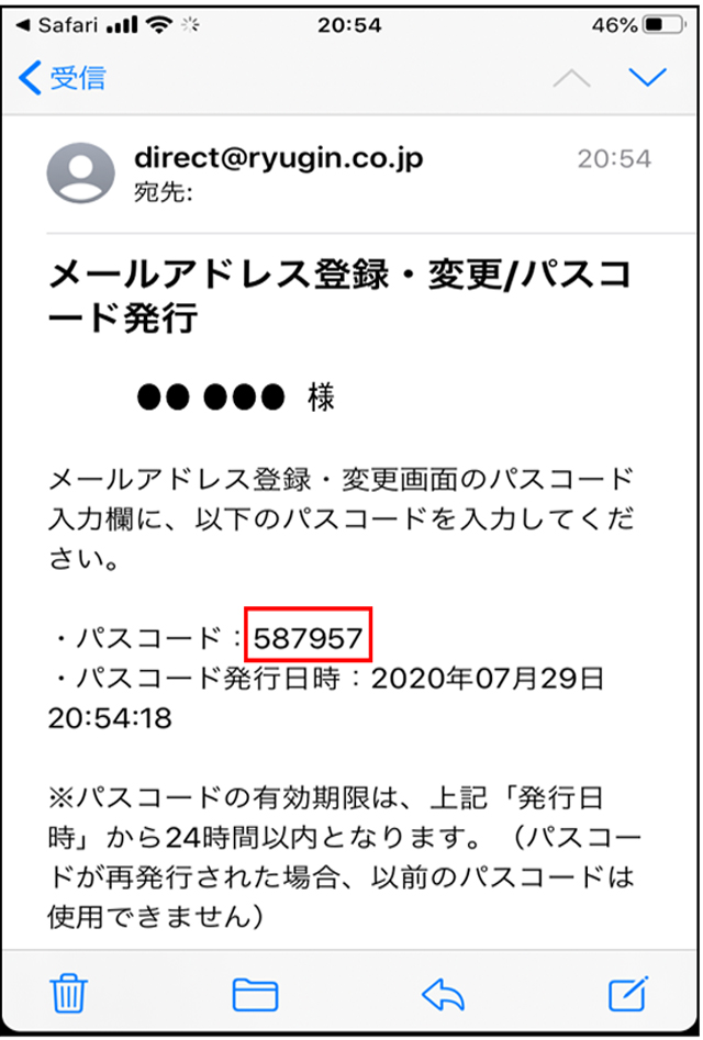 - なお、アドレスの確認が完了するまではインターネットバンキングにログオンできなくなります。
