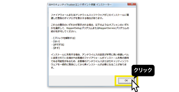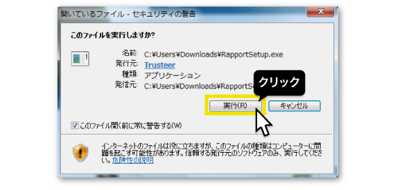※エラーがでる場合は、パソコンのデスクトップ等に保存して実行してください。(デスクトップにTrusteerの緑のアイコンのファイルが追加されます。)
