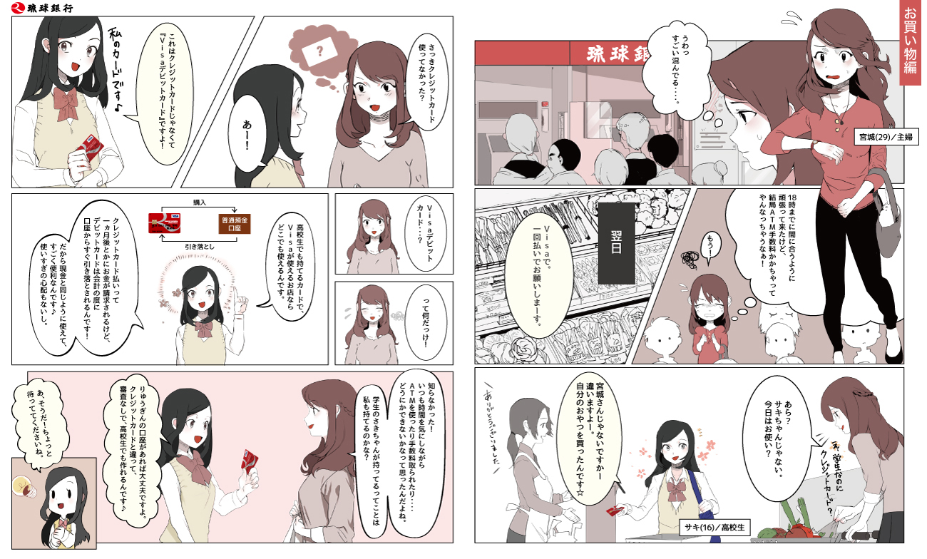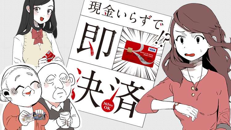 りゅうぎんVisaデビットカードをお持ちなら、スーパーやコンビニ等で現金の手持ちがなくてもお買い物をお楽しみいただけます。