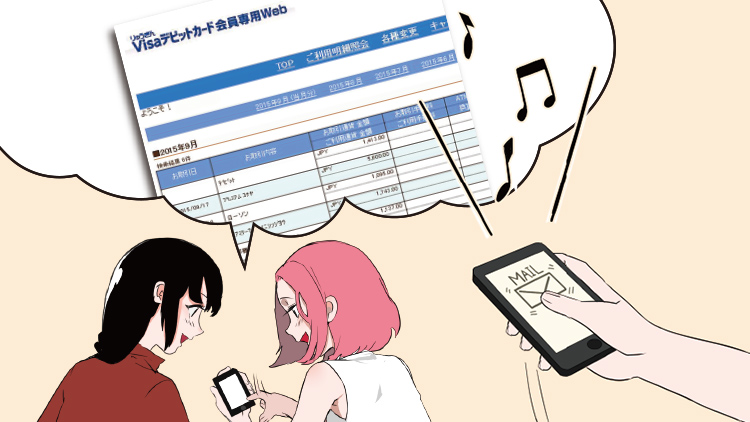 また、スマートフォンのアプリで課金する際にもご利用いただけるので、コンビニ等でプリペイドカードを購入する必要はなく、登録しておけば簡単に決済が完了します。ご利用明細は「 Visaデビット会員専用Web 」でいつでも確認できるので安心です。預金の範囲内でのご利用となるので、使いすぎる心配もなく安心してご利用いただけます。
