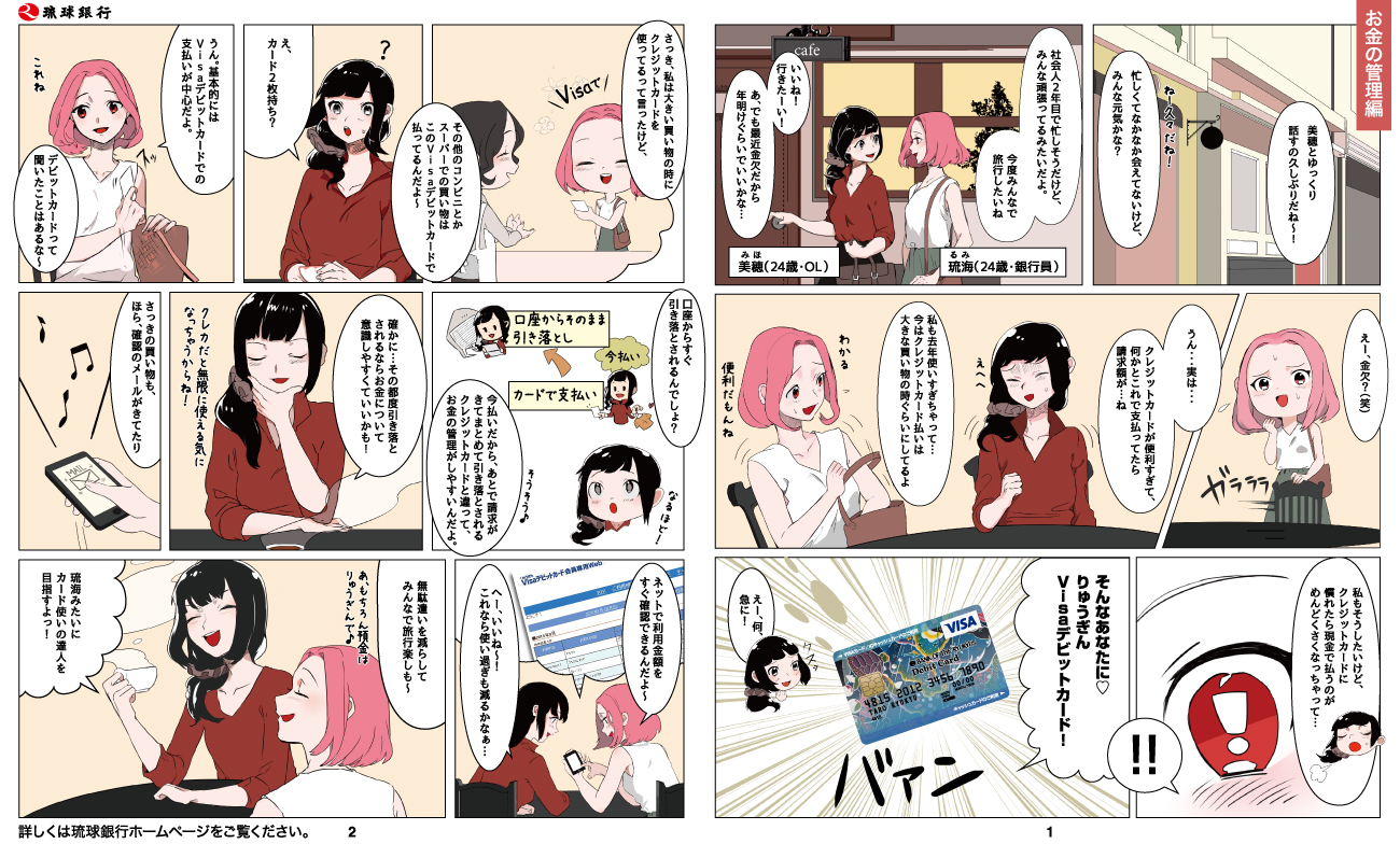 毎日のお買い物を「りゅうぎんVisaデビットカード」でお支払いすると、家計の管理にも役立ちます。クレジットカードとは異なり即時払いのため、ご利用金額をいつでもすぐに「 Visaデビット会員専用Web」でご確認いただけます。「家計簿に記録するために…」と、レシートを溜め込む必要もありません。「りゅうぎんVisaデビットカード」で現金感覚でお買い物をして、わかりやすく、簡単に、お金の管理をしてみませんか?
