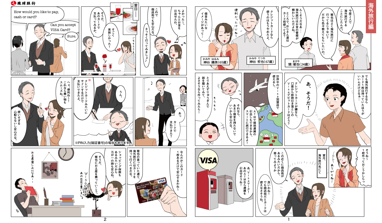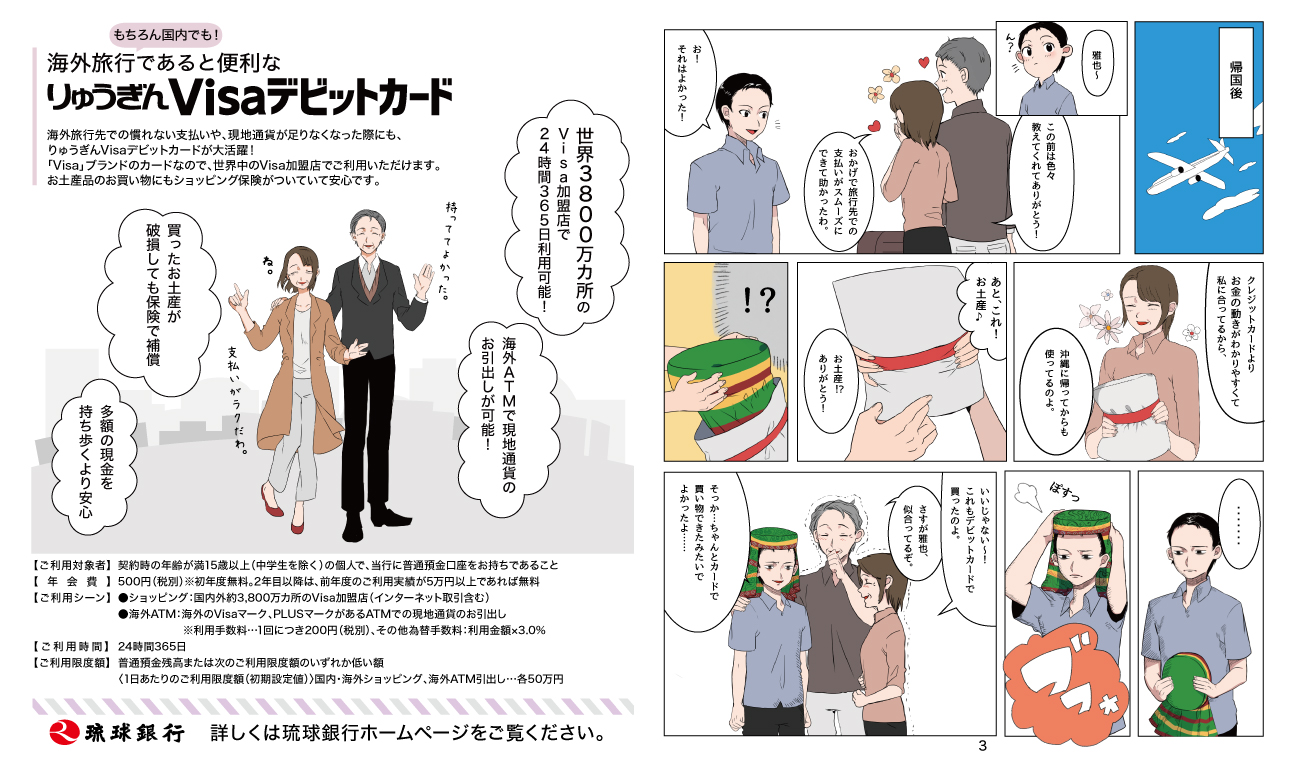 お買い物の前に財布の中を確認して、ATMでお金を引き出して…という手間もATM手数料もかかりません。サインレスでご利用いただけるお店もあり、現金でお支払いの時と同じ感覚で気軽にご利用いただけます。「現金」を「りゅうぎんVisaデビットカード」に置き換えて、スマートにお買い物を楽しんでみませんか?