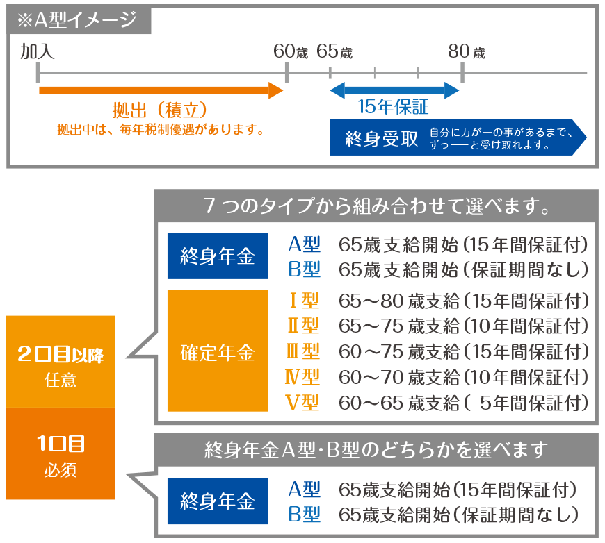 65歳から80歳の間にご自身に万が一のことがあっても年金原資相当額がご遺族に支給される保証がついています。